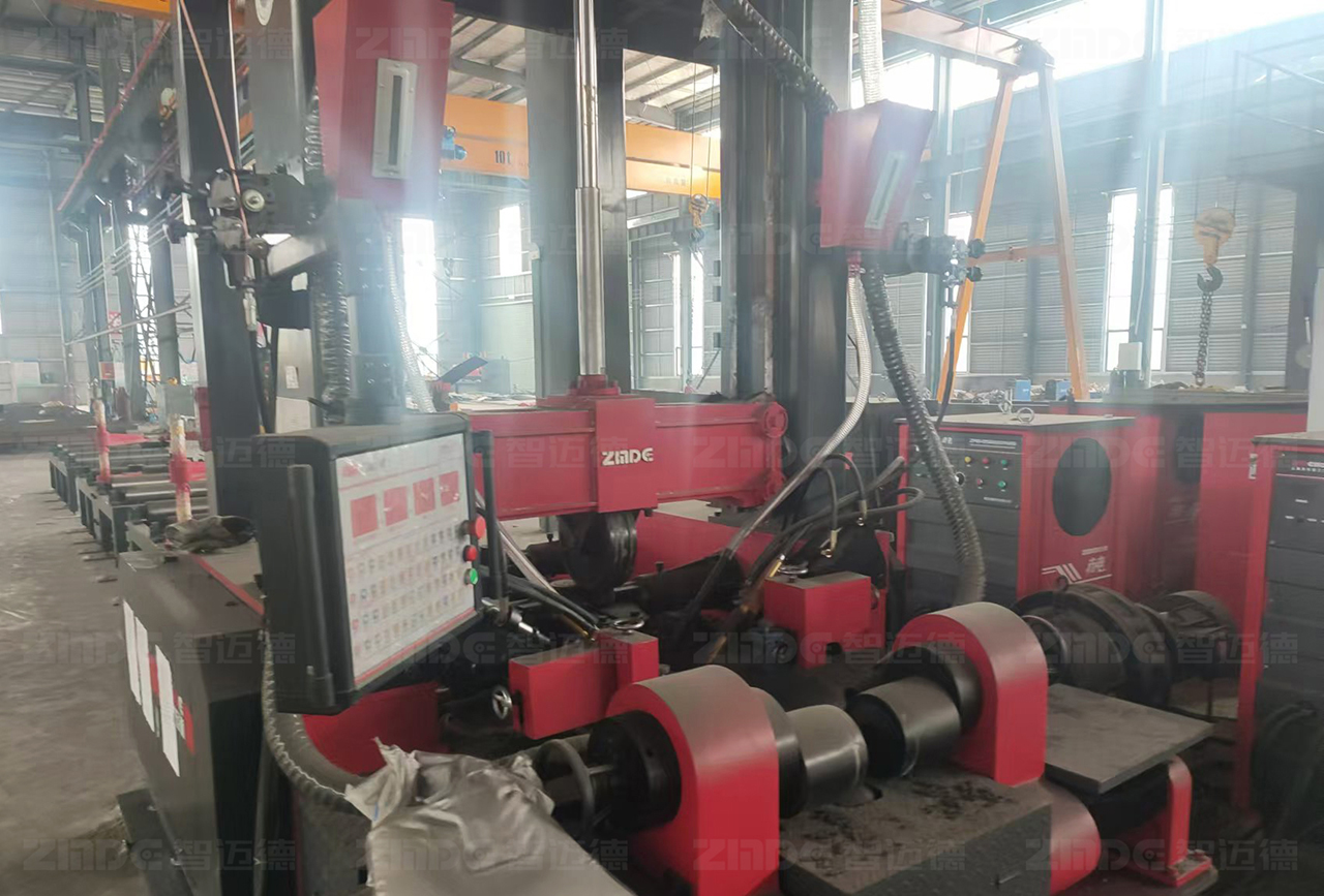 高度的集成性,為設(shè)備的自動化控制與智能化操作提供了便捷條件。組焊矯一體機(jī)通過精密、集成的設(shè)計和智能化控制系統(tǒng),實現(xiàn)整個過程的自動化、智能化生產(chǎn)。設(shè)備可自動對中,無需點焊,腹板18mm以下免坡口焊接,采用熱焊熱矯工藝,從頭焊到尾,在提高生產(chǎn)效率的同時,有效提升了鋼構(gòu)件的產(chǎn)品品質(zhì)。與此同時,可選配智邁德“絕影”三極三弧焊機(jī),大幅提升焊接效率,或選配智邁德“烏騅”六極六弧焊機(jī)的組焊矯一體機(jī),實現(xiàn)厚板的焊接。