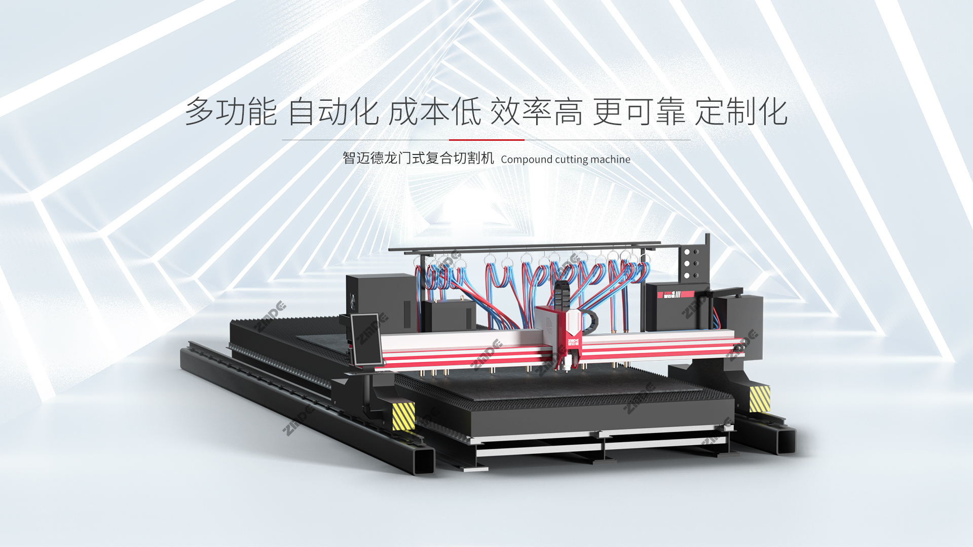 ① 依據板材厚度定制設備功率,分段式模塊化組裝切割平臺,軌距、軌長可定制,有效保障切割幅面;